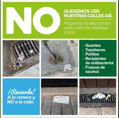 Estos elementos que solían ser utilizados solo por clínicas, hospitales y demás centros de salud, ahora son arrojados a las calles, por lo cual las autoridades ambientales han hecho un llamado de atención para que estos residuos sean desechados de forma consciente y no arrojados a canales de aguas lluvias, terminando en fuentes hídricas como ríos y quebradas, causando contaminación y daño a la fauna silvestre.