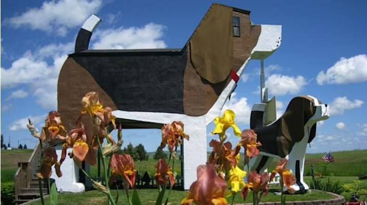 Dog Bark Park Inn. El ‘Sweet Willy’ es un hotel con forma de Beagle, ubicado en Cottonwood, Idaho, Estados Unidos. Cuenta con nueve metros de altura. Sus huéspedes entran a través de la cubierta de un segundo piso y la habitación se encuentra en la cabeza del perro.