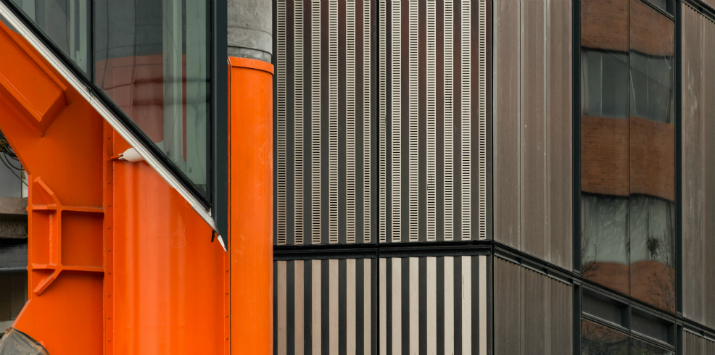Aprovechando las nuevas herramientas para modelación, se realizó el diseño de la fachada en un modelo BIM 3D que integró los 200 tipos de paneles diferentes asignados por color para controlar avance de planos de taller, de fabricación, logística, e instalación.