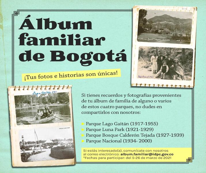 La ciudadanía podrá participar en la convocatoria ´Álbum Familiar de Bogotá´, liderada por el Instituto Distrital de Patrimonio Cultural y el Museo de Bogotá, quienes desde 2009 han recopilado más de 5.800 imágenes provenientes de los álbumes fotográficos de los bogotanos, lo que ha permitido la realización del álbum de familia más grande de la capital.