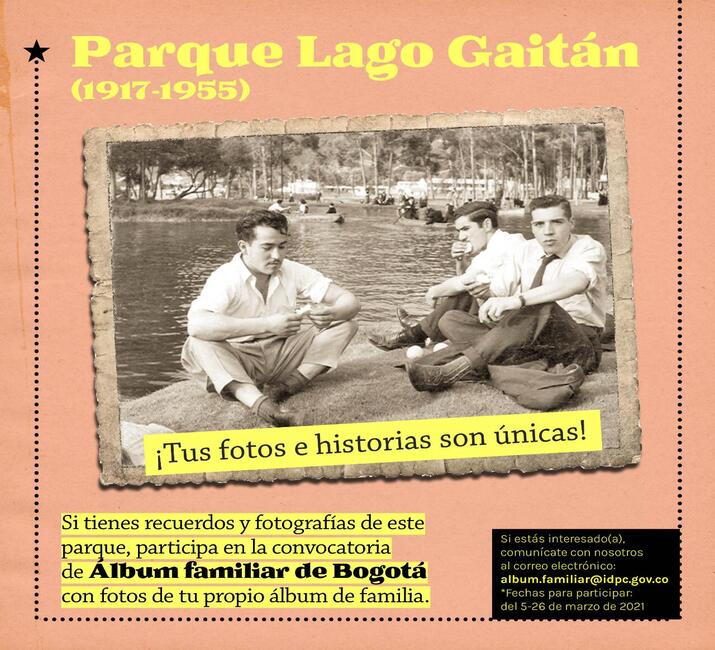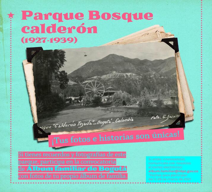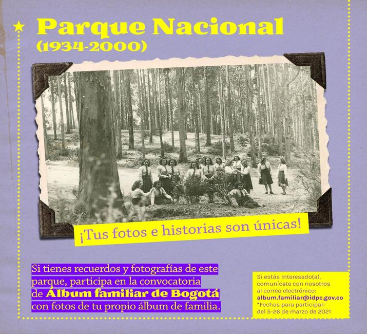 -El Parque Nacional: inaugurado el 6 de agosto de 1934 y ubicado entre la carrera Séptima y los cerros orientales y las calles 39 y 36, es uno de los parques más importantes y emblemáticos de Bogotá. El equipo de Publicaciones del IDPC continúa en la búsqueda de imágenes que cuenten acerca del zoológico que allí existió, los paseos de olla, las carreras de triciclos, los encuentros culturales, deportivos, políticos y de movilización, y en fin, todo tipo de actividades que nos unen a este lugar.