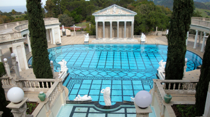 4. La piscina del Castillo Hearst se encuentra en California, Estados Unidos. Esta lujosa obra fue diseñada por la primera arquitecta de Estados Unidos Julia Morgan y fue construída entre 1917 y 1947. El templo romano a su alrededor es auténtico, traído piedra a piedra desde Europa. La alberca que lleva por nombre 'Neptuno' tiene capacidad para un millón de litros de agua.