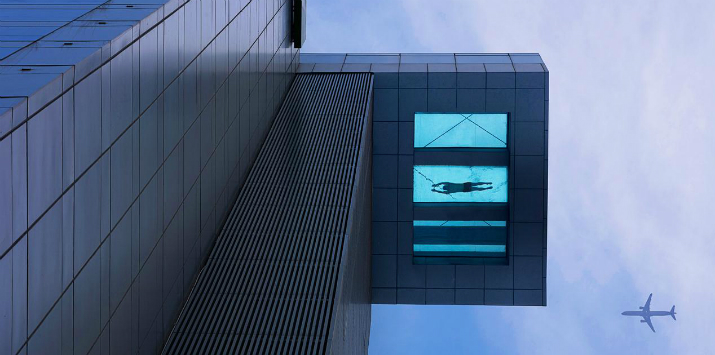 5. La impresionante alberca ubicada en el piso 24 del hotel Holiday Inn Shanghai Pudong, en el centro del Distrito de Pudong, es una piscina cubierta, con 30 metros de largo y 6 metros de ancho, su piso es transparente permitiendo ver hacia las calles de Shanghai, mide 30 metros de largo y 1,50 metros de hondo. No es apta para personas que sufren de vértigo.