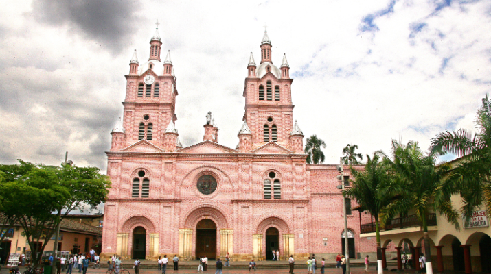Su construcción duró quince años y se inauguró el 2 de agosto de 1907. Entre sus dos torres se encuentra una estatua del Santísimo Redentor de dos metros y medio de altura, hecha en hierro fundido. El campanario de esta iglesia es famoso por las cinco campanas francesas que posee en su interior y que lo convirtieron en el más grande y sonoro de Colombia.