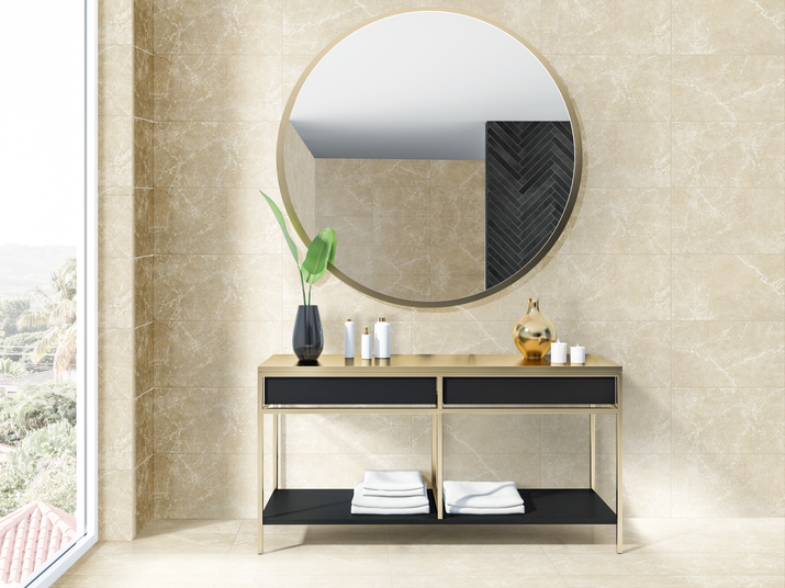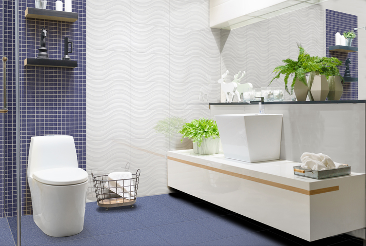 1. Las áreas del sanitario y lavamanos no deberían llevar demasiado contraste o color, si además cuentan con ducha, ya que los detalles que llamen la atención deberían estar en este espacio. La recomendación es que en el área seca debemos procurar usar cerámicas de un solo tono o tonos similares, dependiendo del tamaño, configuración e iluminación del baño. Es válido usar detalles como cenefas o mallas para dividir los espacios de forma que podamos balancear el espacio superior e inferior de ser necesario o jugar con configuraciones que se alineen con el espejo, sanitario o lavamanos para destacar estos accesorios pero que en cualquier circunstancia sean complemento y no sean los únicos que se roben la atención.