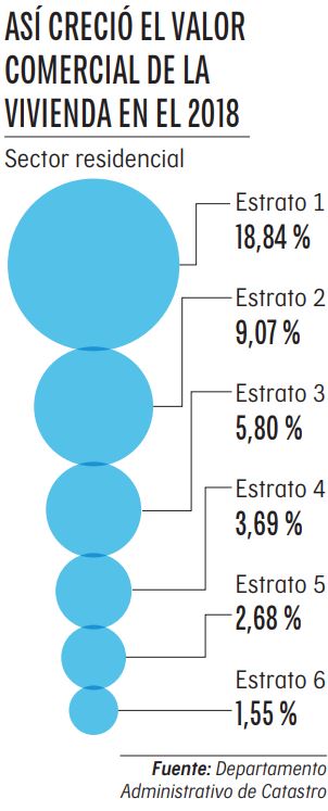 En el estrato 1, la valorización fue del 18,84%, mientras que en el 2 alcanzó el 9,07%.