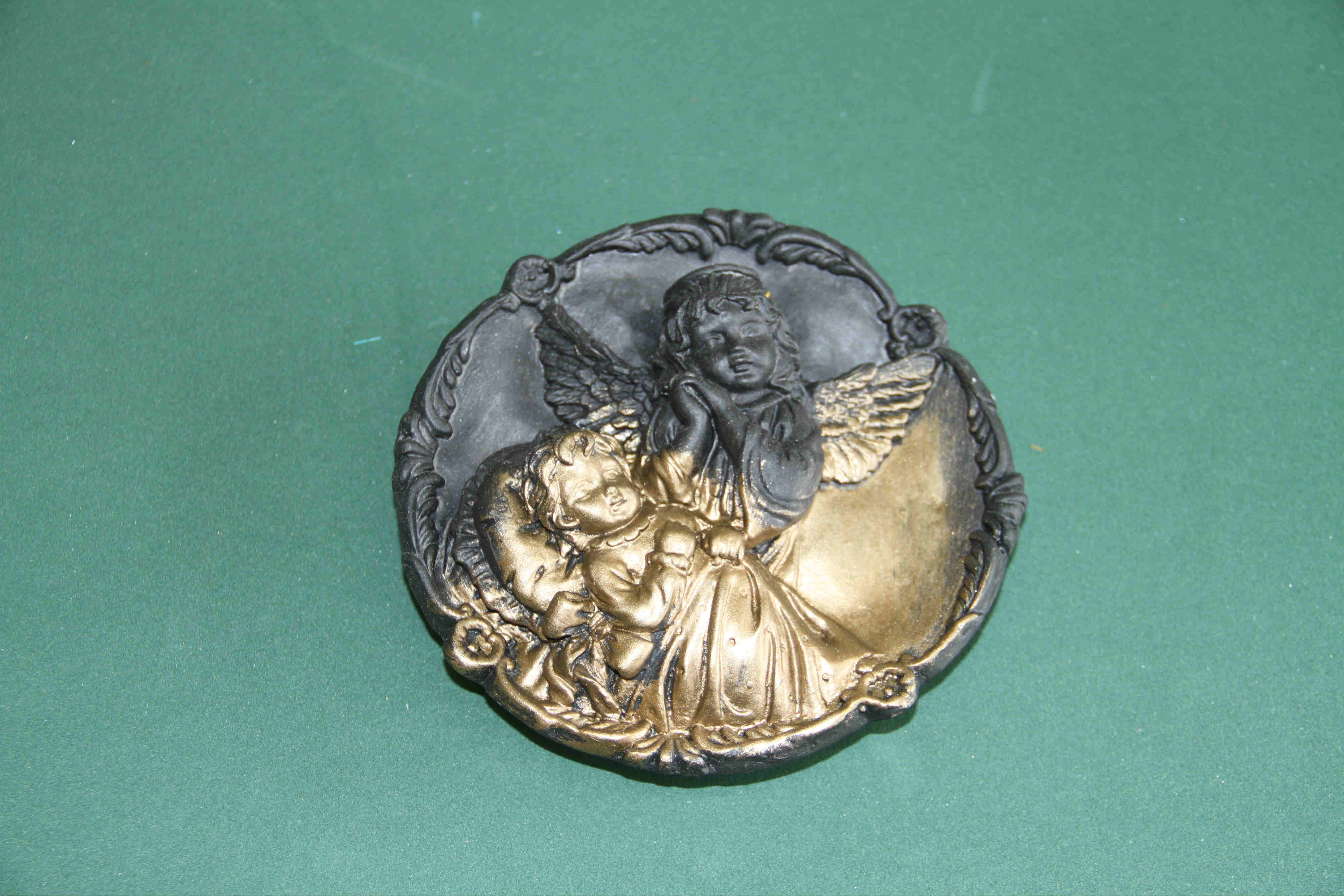 Luego de aplicar el acrílico negro, la pieza de yeso debe ser pintada en su totalidad con la pintura metalizada, se recomienda hacer este proceso dos veces.