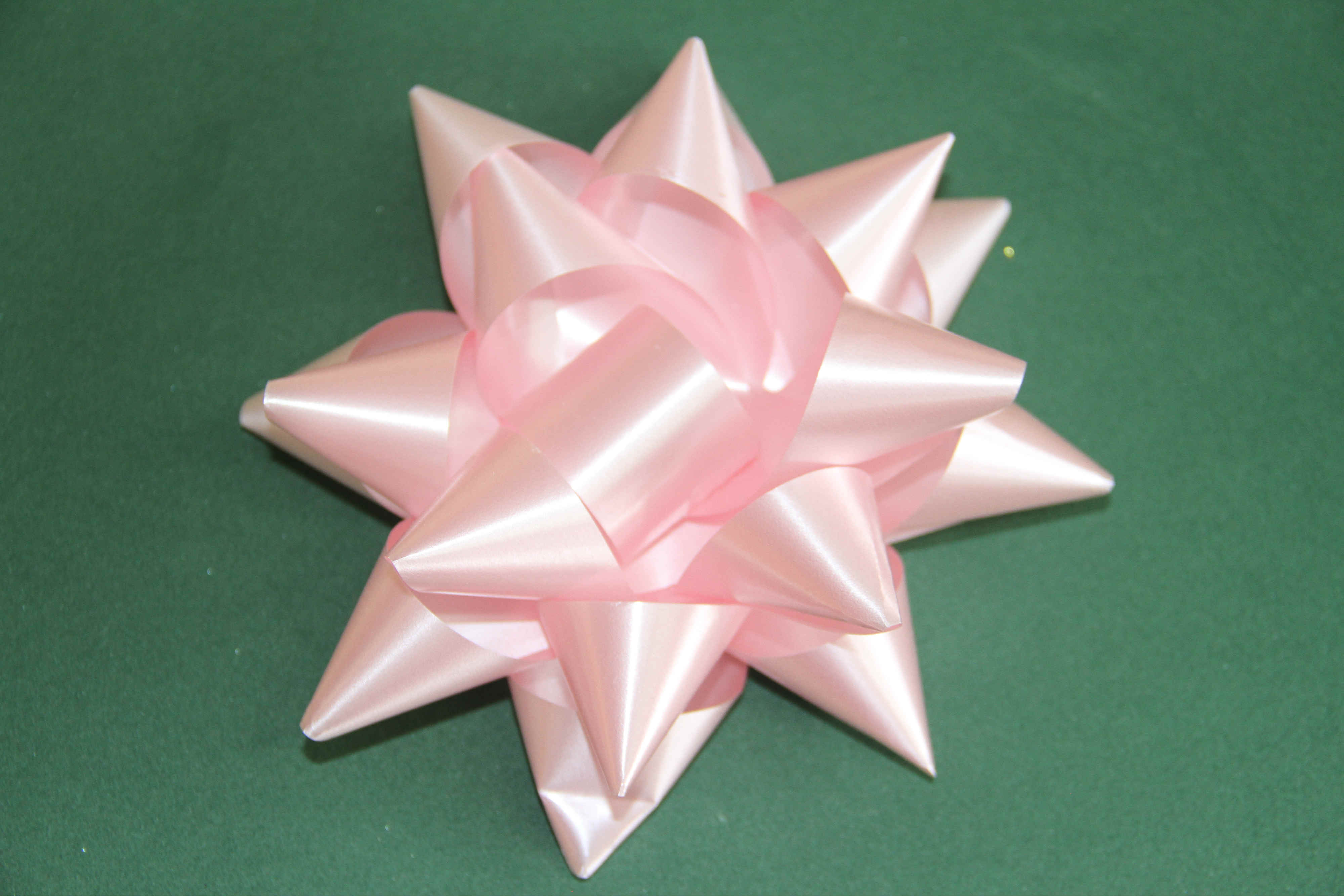 Moño tipo vela, para esto se debe realizar seis armellas y se le realizan cuatro ‘orejas’, se grapa en el centro y se corta la cinta sobrante.