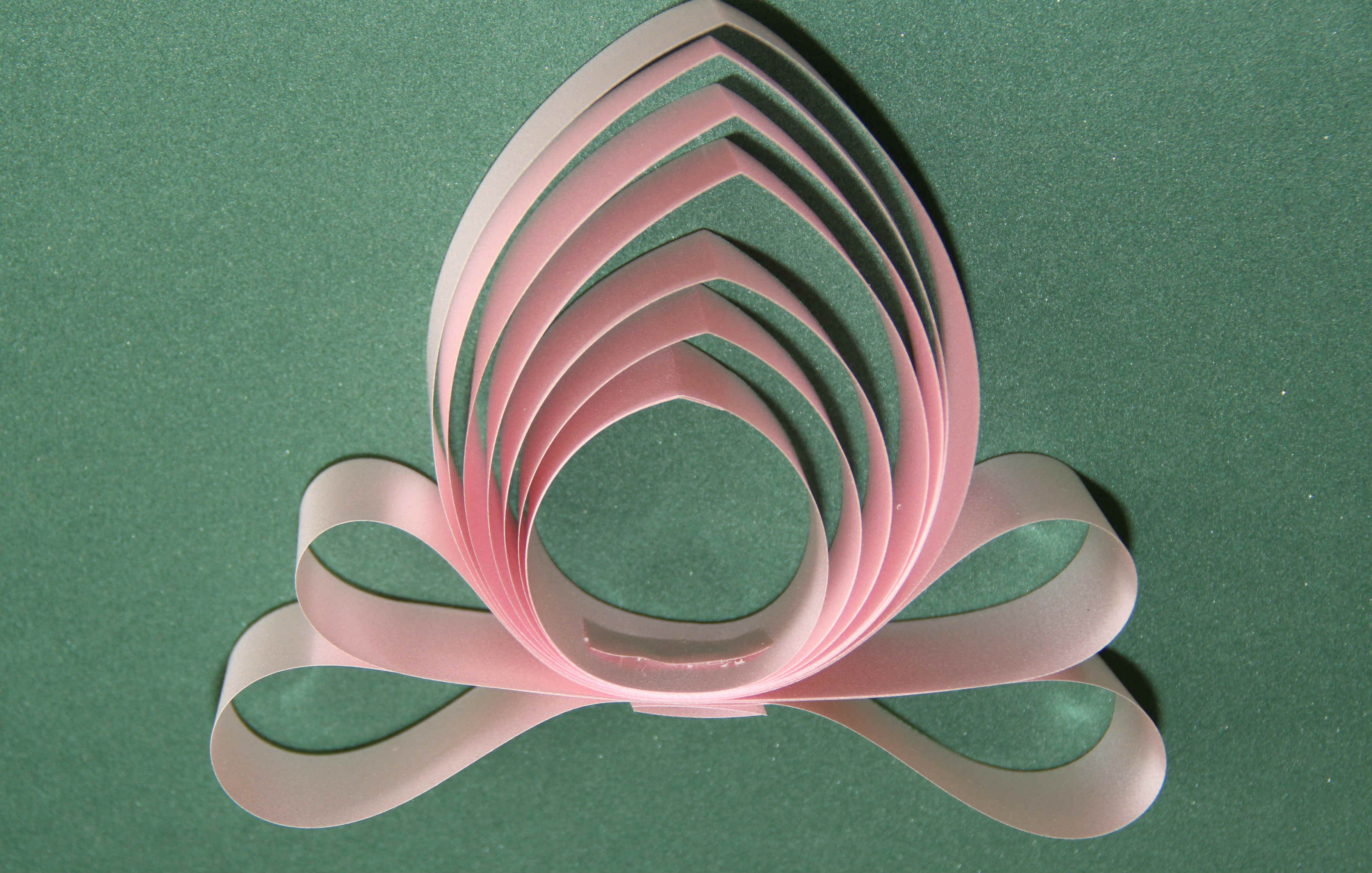 Con el molde en foamy de cuatro milímetros (este debe estar marcado del 1 al 6), se toma la cinta de papel y se enrolla del número uno al seis, y así de debe hacer las vueltas que usted desea. Luego se retira la cinta el foamy, se le coloca una grapa en el centro del moño y se corta la cinta sobrante.