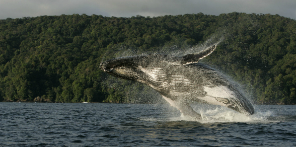 Aquí se preserva la vida de las ballenas jorobadas y las tortugas marinas, un espectáculo natural que se puede disfrutar cada año, cuando estas especies llegan a la Costa Pacífica para su ciclo de apareamiento.