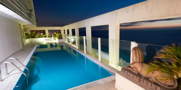 Se sitúa en el Malecón de La Habana (Cuba). Cuenta con cuatro habitaciones elegantes, cada una con balcón privado y ventanas con vista al mar Caribe. Además, tiene dos jacuzzi y una piscina privada.